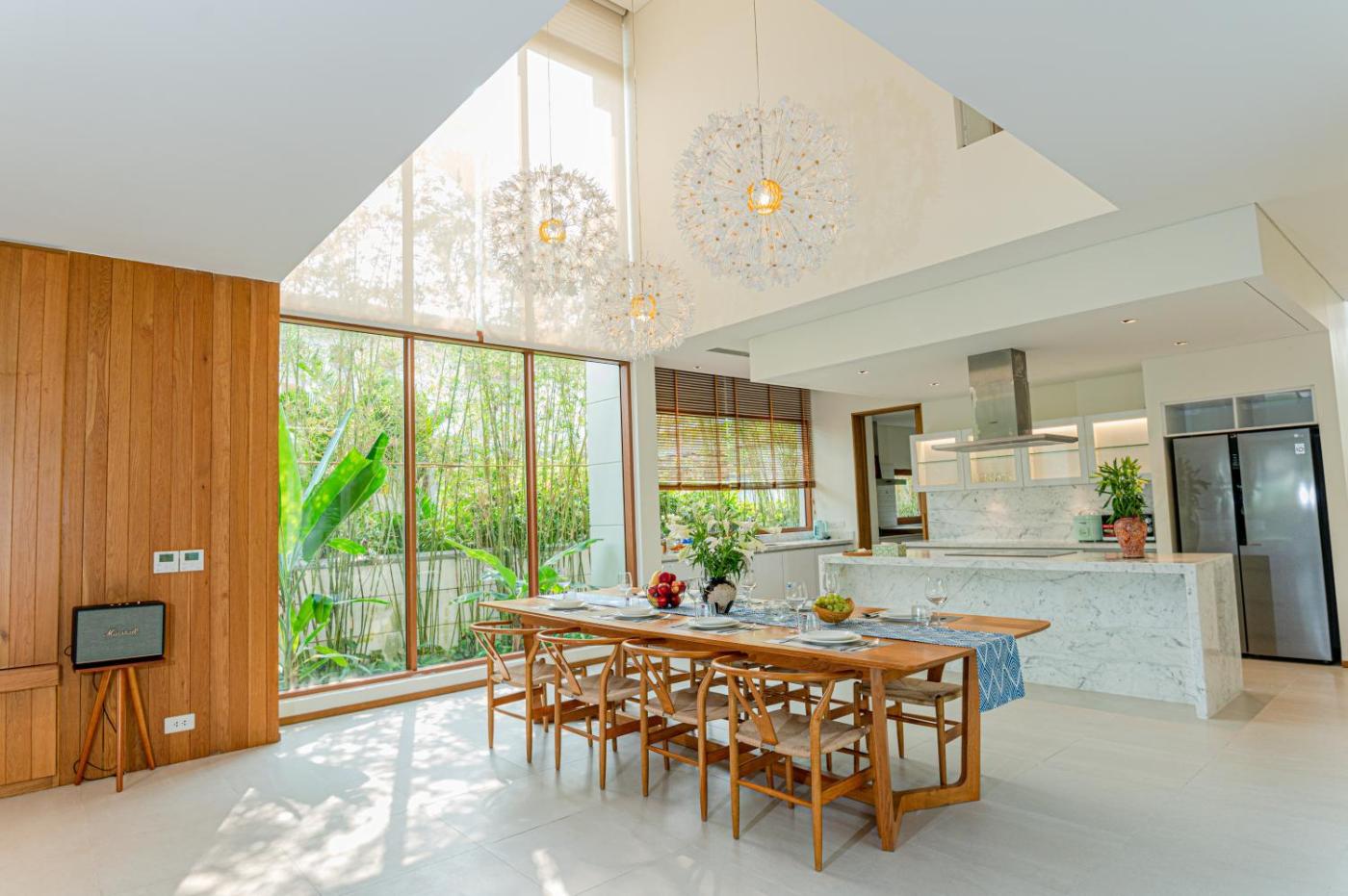 Deluxe Villa. This villas special feature is the private pool. Featuring a private entrance, this air-conditioned villa consists of 1 living room, 4 separate bedrooms and 4 bathrooms with a walk-in shower and a bath. In the well-fitted kitchen, guests will find a refrigerator, kitchenware, a microwave and an electric kettle. The spacious villa provides a washing machine, a seating area, a dining area as well as a terrace with garden views. The unit offers 5 beds. ;