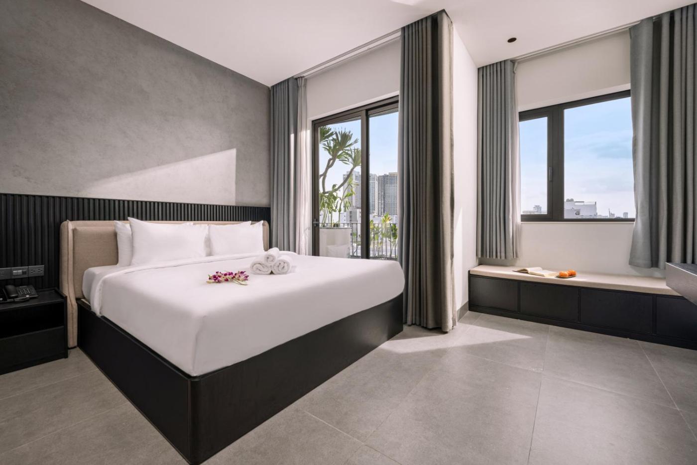 Deluxe King Studio. Offering free toiletries and bathrobes, this studio includes a private bathroom with a shower, a bidet and a hairdryer. The kitchenette is fitted with a stovetop, a refrigerator and an electric kettle. Boasting a balcony with city views, this studio also offers air conditioning and a flat-screen TV. The unit has 1 bed. ;