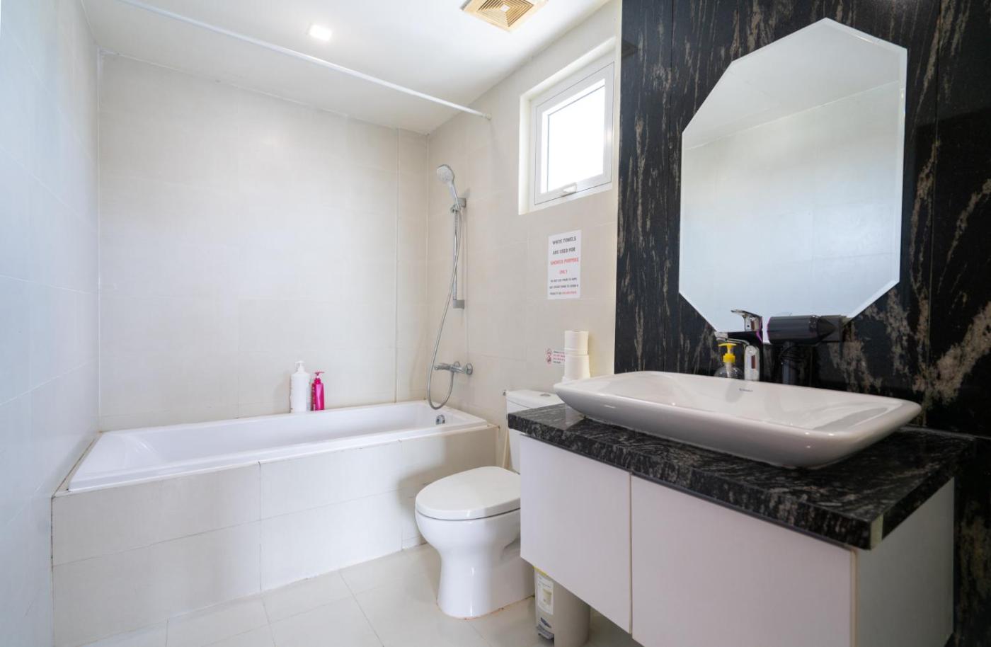 Four-Bedroom Apartment. The spacious apartment has 4 bedrooms and 2 bathrooms with a walk-in shower and free toiletries. Guests can make meals in the kitchen that has a stovetop, a refrigerator, a microwave and an electric kettle. The air-conditioned apartment features a flat-screen TV with cable channels, a washing machine, soundproof walls, a dining area as well as city views. The unit has 4 beds.